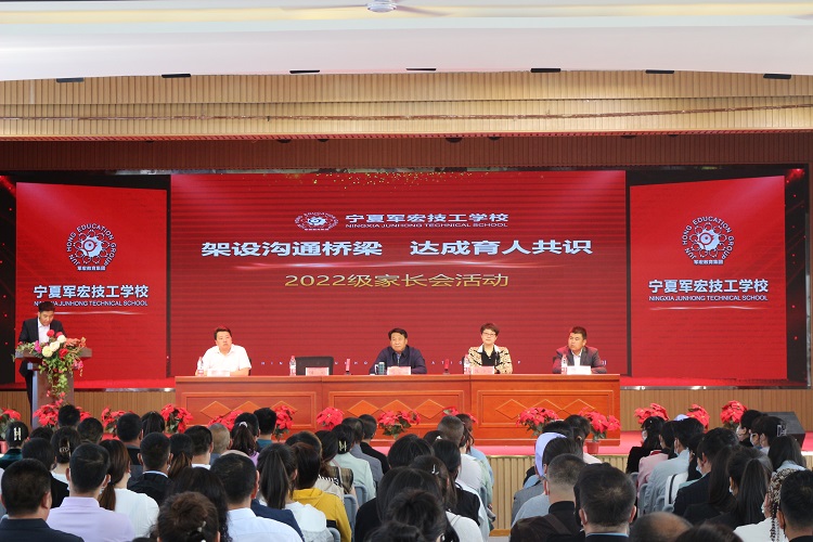 集中家长会会议由宁夏军宏技工学校校长叶静波主持。宁夏军宏教育集团董事长马军宏,宁夏军宏技工学校党支部书记、常务副校长田勇,校长叶静波、副校长常江及高一年级主任杨军纳出席参加了2022级家长会活动。本次活动还邀请到了自治区骨干教师、家庭教育高级指导师培训师陈少娟老师为我校2022级全体家长进行“家校共育,护佑成长”的专题讲座。2022级家长会活动在激昂的国歌声中拉开帷幕。