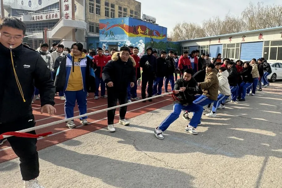 在冬日暖阳的照耀下,学校操场上,一场力与美的盛宴悄然拉开序幕。为加强同学们的凝聚力,增强同学们的集体荣誉感,丰富校园文化生活,2024年12月16-20日,我校开展了冬季拔河比赛活动。