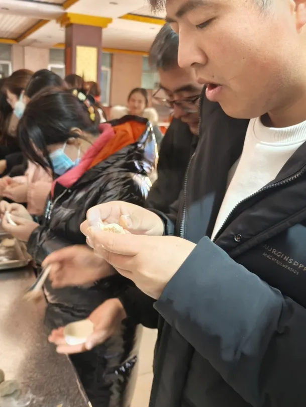 热气腾腾的饺子端上桌,教师们围坐,共享劳动果实。咬一口,汤汁四溢,暖了脾胃,更拉近心的距离。