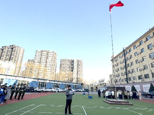 在全校师生的共同注视下,五星红旗缓缓升起,直至旗杆顶端迎风飘扬。这一刻,五星红旗在晨光中熠熠生辉,仿佛在诉说着新学期的希望与挑战。