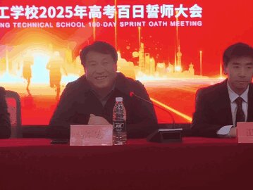 当倒计时牌终于定格在“100天”时,我们——宁夏军宏技工学校2025届的学子们已披甲执锐、整装待发。在这个特殊的时刻,宁夏军宏教育集团董事长马军宏先生,宁夏军宏技工学校田勇校长、常江副校长、马良玉副校长及三年级全体师生列席参加了以“百日铸剑锋芒聚,直破龙门占鳌头”为主题的百日誓师大会。本次大会由席陆老师主持。