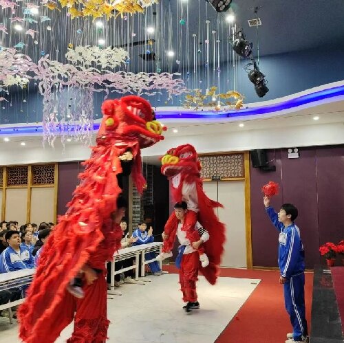 “千淘万漉虽辛苦,吹尽狂沙始到金。”百日誓师大会的第一项议程,全体起立,奏唱国歌!在庄严隆重的仪式后,由我校一二年级学生组成的舞狮团队,为三年级的学长学姐们进行了一场精彩绝伦的舞狮表演。狮跃祥云,寓意着学子们的勇敢与智慧。这不仅是中华传统文化的精彩展现,更是对学子们未来前程的美好祝愿。