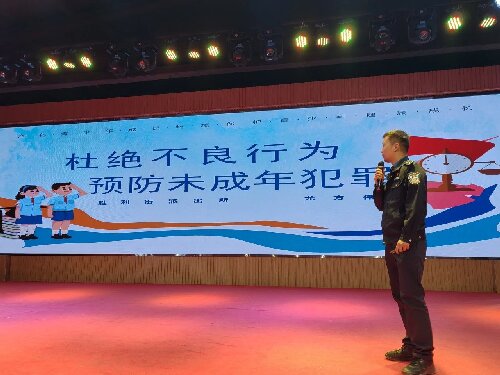 讲座开始,胜利街派出所的尤方伟警官围绕'杜绝不良行为,预防未成年人犯罪'这一主题,进行了详细的阐述。