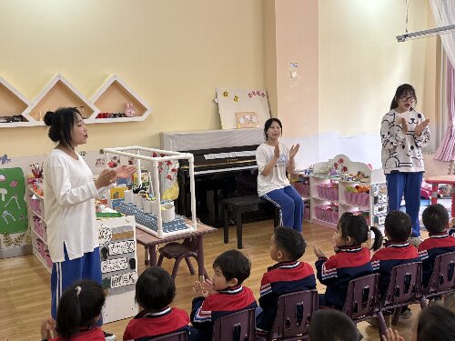 在指导教师的示范引领下,学生们运用《幼儿心理学》《活动设计》等课程知识,完成晨间接待、集体教学、区域活动指导等全流程工作体验。