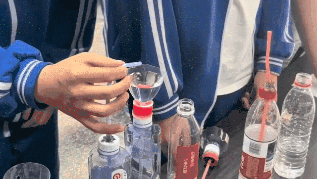 1.压力喷泉组:通过吸管与橡胶塞构建“气压密室”,利用水流的流入或挤压瓶身改变内部压强,驱动水流喷出;