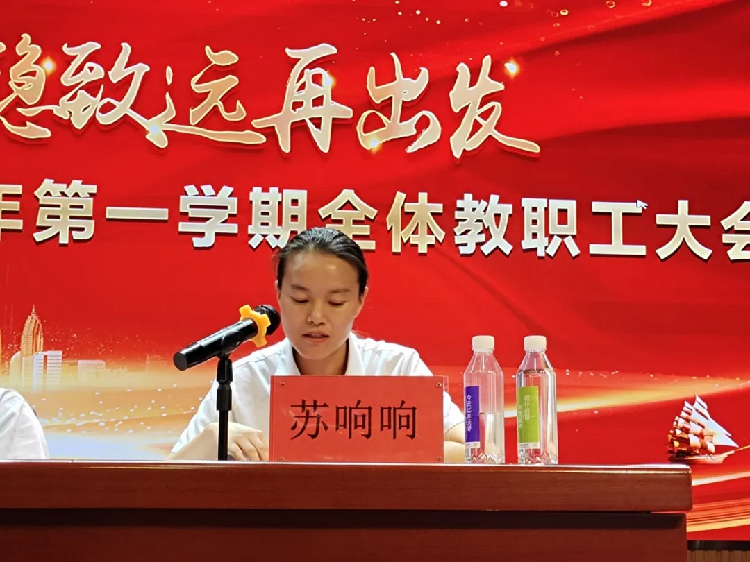 苏响响助理宣读2025-2026学年各年级教师安排决定。她表示,本次师资调配坚持“老中青结合、学科均衡、优势互补”原则,“既让经验丰富的骨干教师引领团队,也为青年教师搭建成长平台”。她呼吁全体教师:“以‘全校一盘棋’的大局观,打破年级、学科壁垒,共同为学校教育质量提升贡献力量。”