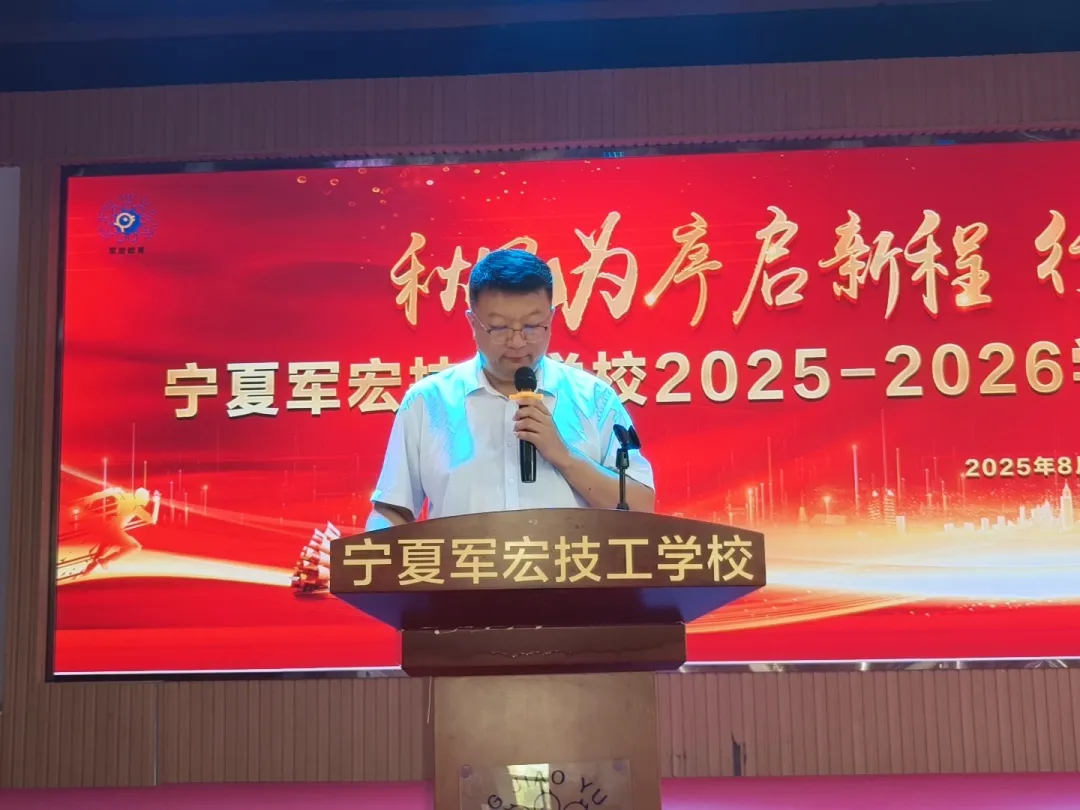 最后,他以铿锵之语收尾:“教育是一场‘接力赛’,愿我们携手并肩,以奋斗之笔书写宁夏军宏技工学校更辉煌的明天!”