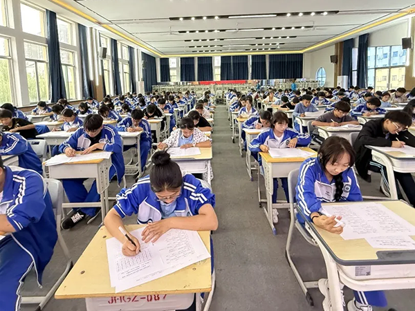 考场上,学子们凝神静思、认真作答,笔尖在试卷上流淌的不仅是文字,更是对历史的敬畏与对祖国的赤诚。他们时而眉头微蹙回忆历史细节,时而奋笔疾书阐述对爱国意义的理解,用专注与严谨,展现着新时代青年对祖国的热爱。