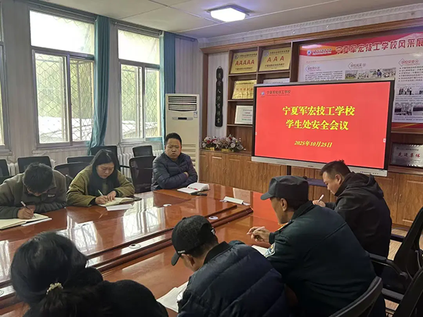 为进一步压实校园安全管理责任,提升安全服务保障质量,作为校园安全的守护者,保安、宿管责任重大。为提升安保人员安全意识及业务水平,宁夏军宏技工学校于2025年10月25日上午8点30分组织召开了安保和学生处安全工作推进会议。本次会议由学生处副主任李苗主持,主管校园安全副校长田向阳、学生处主任王洪飞、资助中心主任张栋出席会议并讲话。