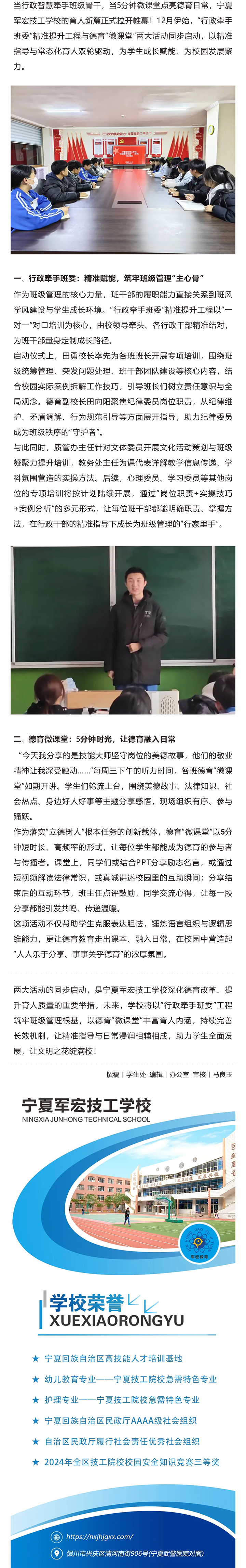 双擎启幕!宁夏军宏技工学校两大德育工程同步启动,赋能成长新征程