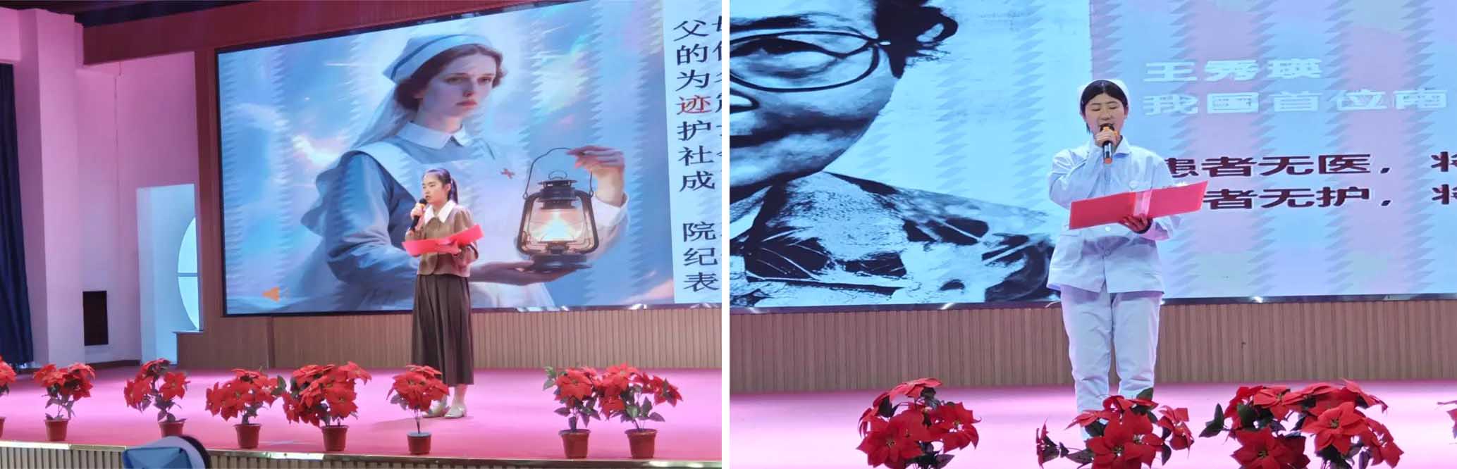 教师代表王亚楠老师深情讲述南丁格尔在克里米亚战争中提灯巡护、拯救生命的动人故事,再现了她以博爱、奉献精神开创现代护理事业的伟大历程。23级护理班学生代表苏金花则分享了中国护理界泰斗王琇瑛毕生投身护理教育与实践,为中国护理事业发展作出卓越贡献的事迹。激励大家以榜样为力量,在护理道路上坚定前行。