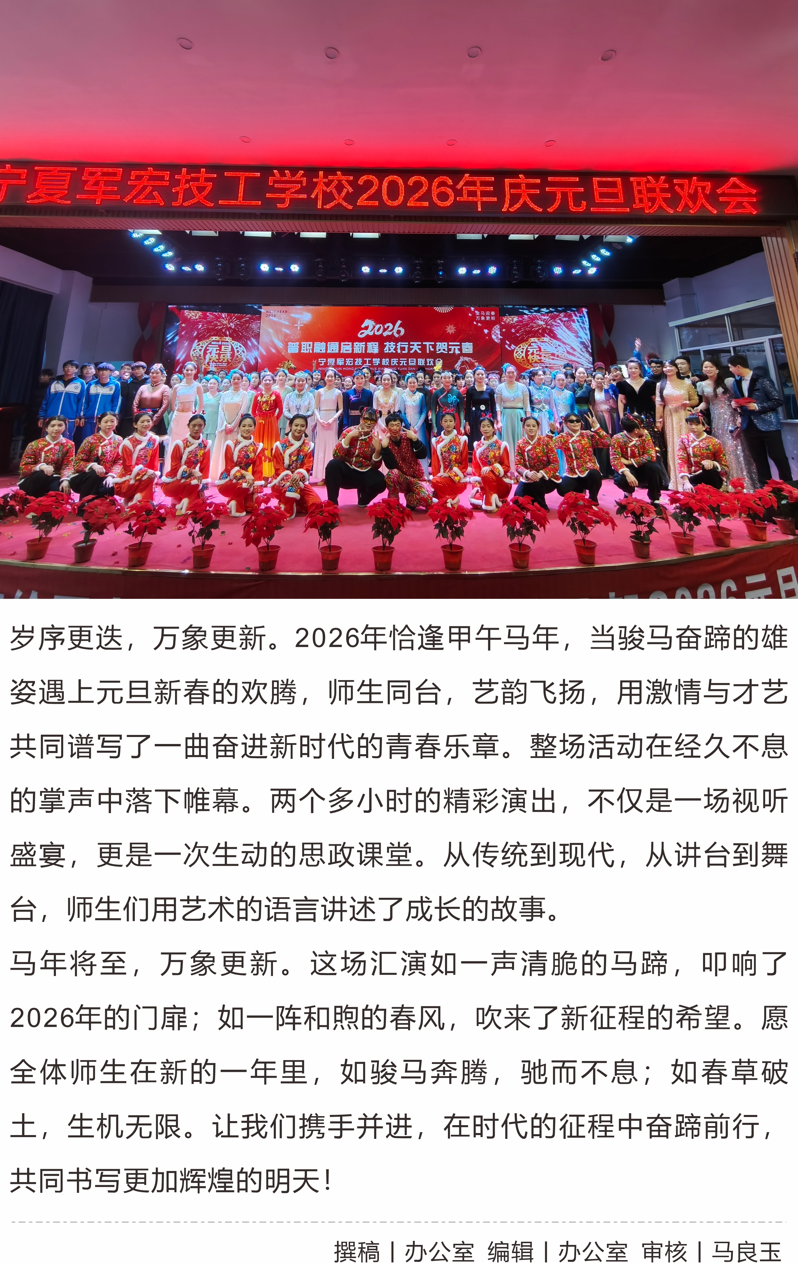 骐骥踏春来 师生共筑梦——宁夏军宏技工学校2026年元旦文艺汇演华彩绽放