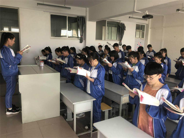 早自习的后半节课,要求学生们养成站立读书、书本在我手中的习惯。