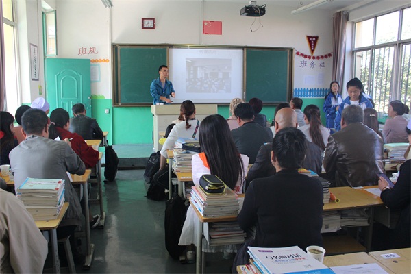 本次家长会分为两个阶段,第一个阶段家长大会在阶梯教室里举行,第二阶段家长在教室分班级交流。