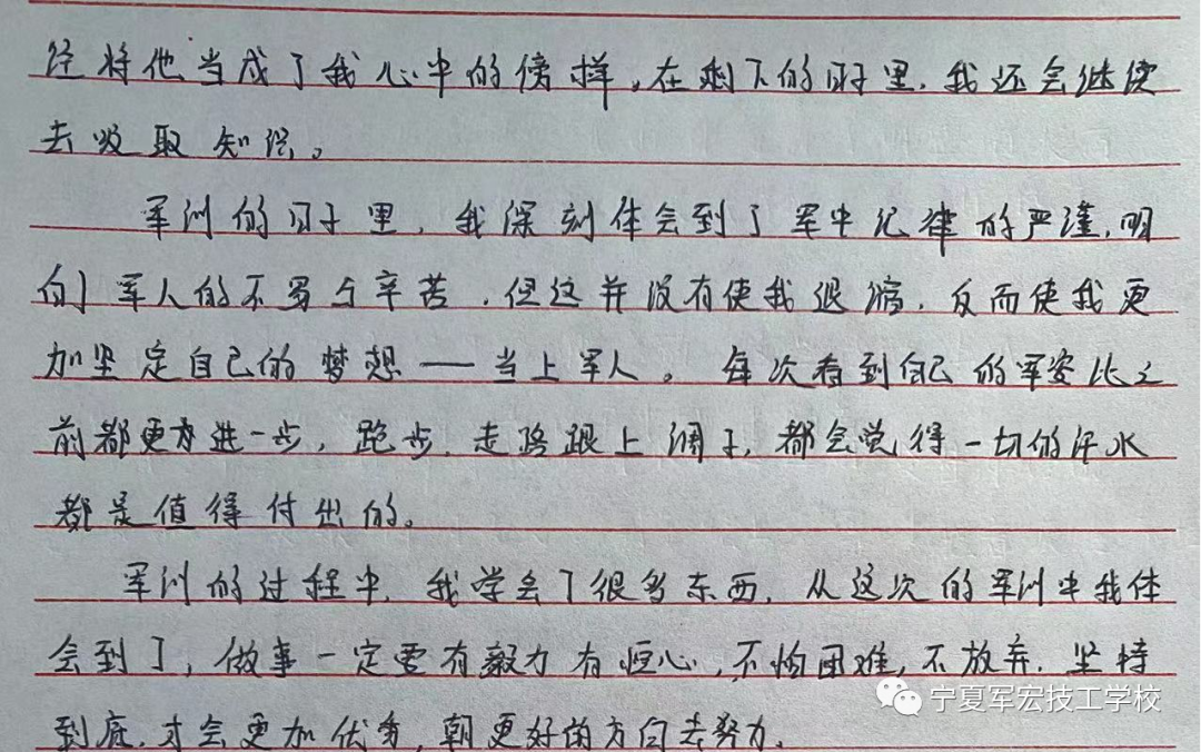 宁夏军宏技工学校2022级新生军训正在如火如荼的进行中,虽然才进行了三天的军训,但是每个同学或多或少都有改变。或是可以很好的和同学沟通,或是不在好怕和室友相处,或是不在胆怯,可以在军训休息间隙展示自己的特长......三天的军训,同学们改变了很多,也有很多的感悟和体会。