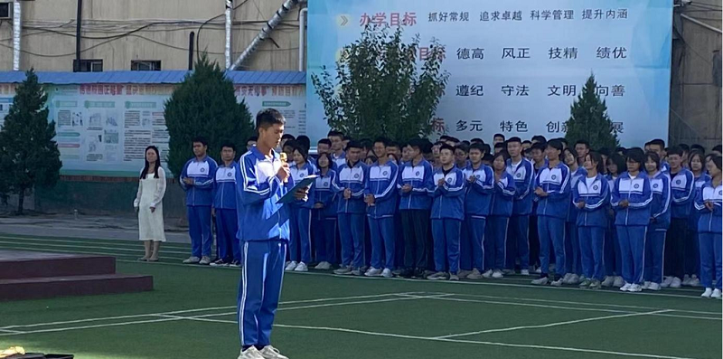 高二五班同学代表在国旗下演讲,他说到:新学期,新的开始,新的挑战,希望同学们在新的学期有新的收获。