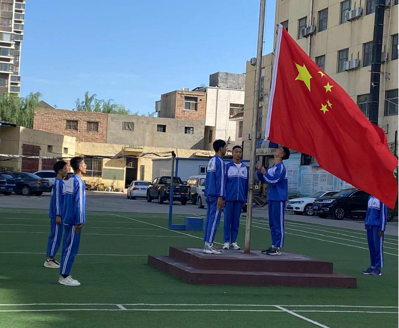 随着军训汇报演出的落幕,正式的高中生活已经吹响了号角。2022年8月22日,宁夏军宏技工学校第一次升旗仪式在操场举行。迎着朝阳,踏着晨露,宁夏军宏技工学校国旗班出旗。在高亢的音乐声中,他们步伐有力,口号洪亮,走向升旗台。在国歌声中,五星红旗迎着风缓缓升起。