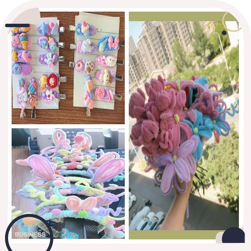 同学们的折纸作品属实很惊艳,但是手工作品也可以与之媲美。只是用简单的毛线,就可以做出各色的花朵、深受女孩追捧和喜欢的发箍、发卡。