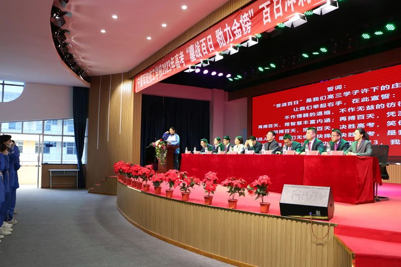 嘹亮高亢的誓言,传达了学生将不负家长、老师殷切期盼的决心,展示了学生对100天冲刺的满怀壮志。
