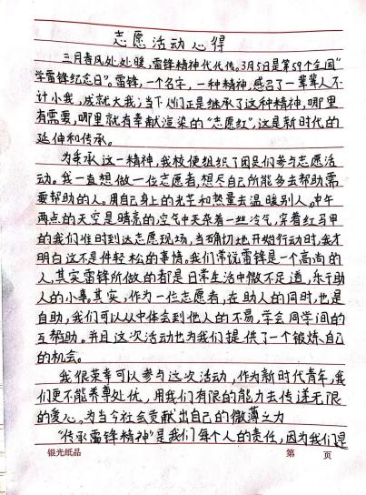 在本次活动结束后,志愿者们每人书写了一篇心得体会,对自己今天的劳动做了一次总结,也对志愿者服务有了一次更深刻的认识。