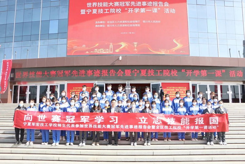 为深入学习贯彻党的二十大精神,落实党中央关于技工教育和技能人才工作的决策部署,深化粤宁合作,学习借鉴广东省高技能人才培养经验,在全区掀起学技术、练本领、比技能、创一流的热潮。2023年3月3日由宁夏回族自治区人社厅、银川市人民政府共同主办,银川市人社局承办的世界技能大赛冠军先进事迹报告会暨全区技工院校“开学第一课”活动在宁夏人民会堂举行。