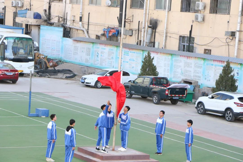 3月6日,宁夏军宏技工学校举行了2022-2023学年第二学期第四周升旗仪式。迎着初升的朝阳,在全体师生的注目礼下,英姿飒爽的国旗护卫队队员们护送鲜艳的五星红旗进场,伴随着庄严的《中华人民共和国国歌》,五星红旗冉冉升起,迎风飘扬。