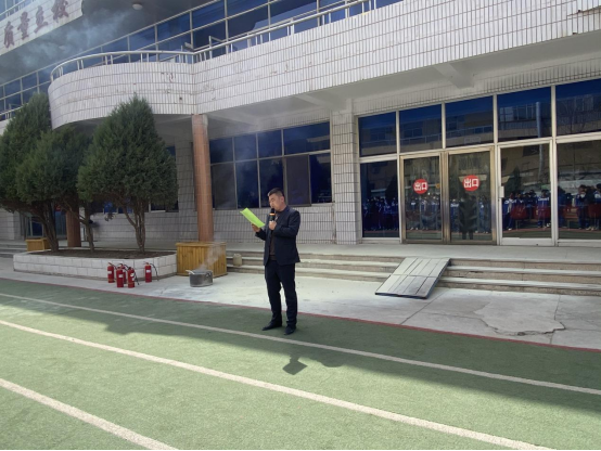 撤离结束后,各班级按要求到达指定空旷位置集合,并立即清点人数,确保所有人员安全。随后,学校安保人员张栋老师和郭福来老师给全体师生详细讲解了灭火器的使用方法,并现场进行了演示,同时邀请了部分师生体验使用灭火器灭火的过程。