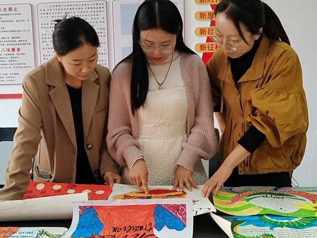 经过组内教师评选,涌现出一大批优秀作品,这些作品色彩艳丽,构思独特,内容丰富,其中有国粹京剧、文房四宝、剪纸皮影等主题。对学生们来说,这是一堂生动的知识普及课,更是一堂深刻的人文综合课,鼓励同学们要多学习、多了解传统文化,作为新时代青年要大力弘扬传统文化精神,积极传承家国历史。