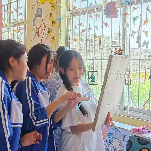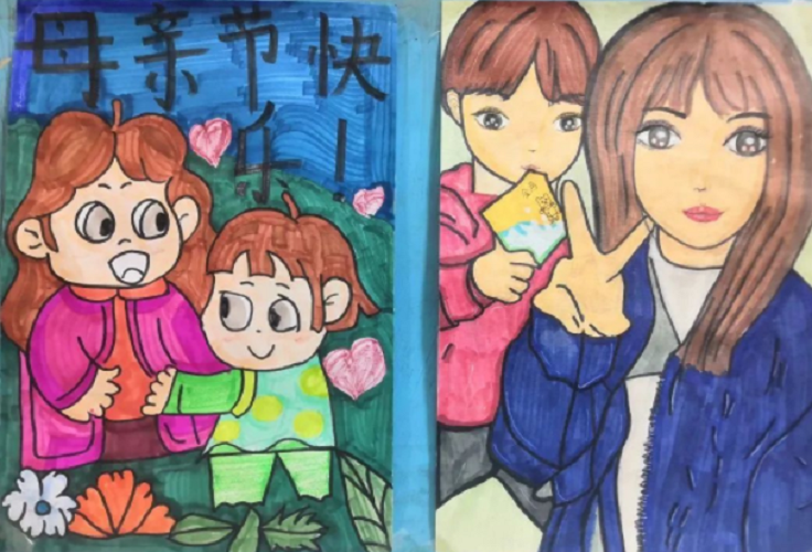 同学们在老师的指导下,利用自己手中的画笔,形象地描绘出一幅幅生动、美丽、多彩的画作,以此表达对母亲的感恩之情。