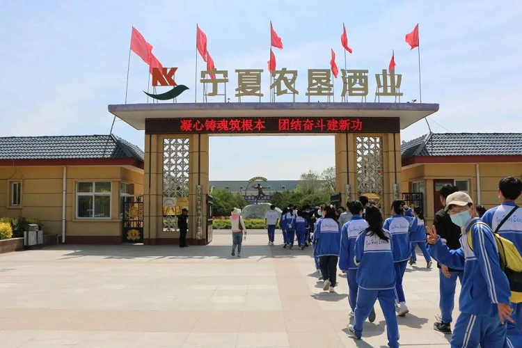 西夏王葡萄酒庄,一个带有酒文化和历史魅力的庄园。据介绍,西夏王葡萄酒庄是一个具有辉煌历史的葡萄酒品牌。一进门,一条蜿蜒曲折的石板路穿过满眼的绿色,望不到头。同学们按班级由工作人员带领有序参观,聆听专业讲解。