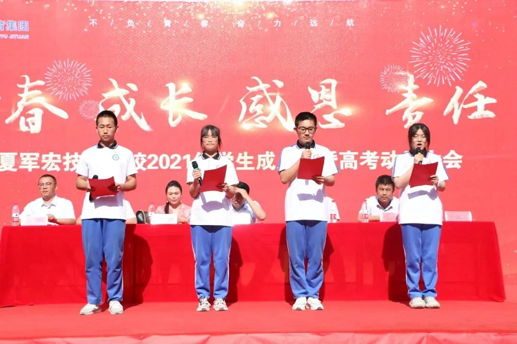 在同学们坚定自信的步伐中,在家长们的笑容和信任中,在全体老师的喝彩与祝福中,宁夏军宏技工学校2021级成人礼暨高考动员大会圆满结束。