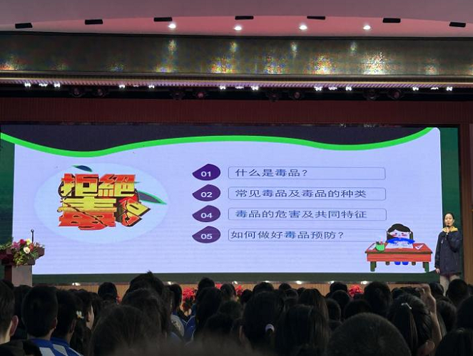 为深入贯彻习近平总书记关于禁毒工作的重要指示批示精神,护航青少年健康成长,切实提升青少年学生禁毒意识和防毒、拒毒能力,2023年10月17日下午宁夏军宏技工学校开展“绿色成长·生命无毒”主题教育讲座,提醒学生擦亮自己的双眼,辨清毒品的真面目,并从自身做起,珍爱生命,远离毒品。