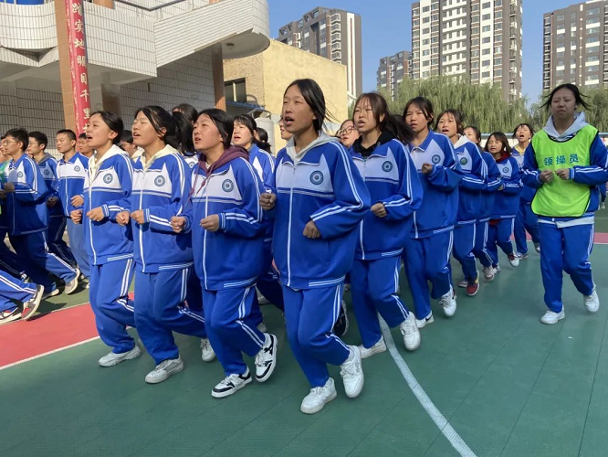 一行行,一列列,同学们步伐一致,眼神坚定。以跑操促锻炼,以跑操促健身,以跑操磨炼意志。跑出同学们的团结,跑出同学们的激情,更跑出同学们饱满的状态。本次比赛为期四天,评委老师从班级出操速度、安静整齐、步伐统一、口号洪亮、班级风貌等方面进行评分,评选出一、二、三名。
