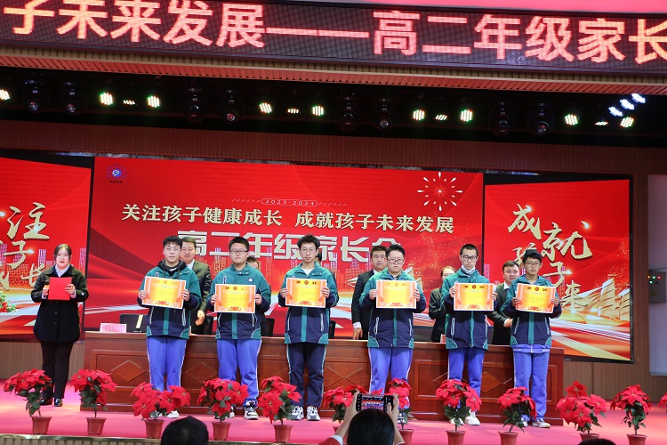 教务处苏主任宣读表彰决定,校领导为学习标兵和进步之星颁发奖状和奖品。