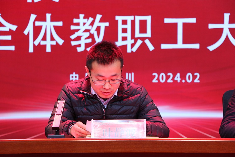 韶光开令序,淑气动芳年。伴随着祥龙迎春的脚步,满载憧憬与希望的新学期如约而至。为明确新学期发展目标,科学部署开学准备工作,确保新学期各项工作有序开展,2月23日下午,我校全体教职工齐聚多功能厅,隆重召开2024年春季学期第一次全体教职工大会。