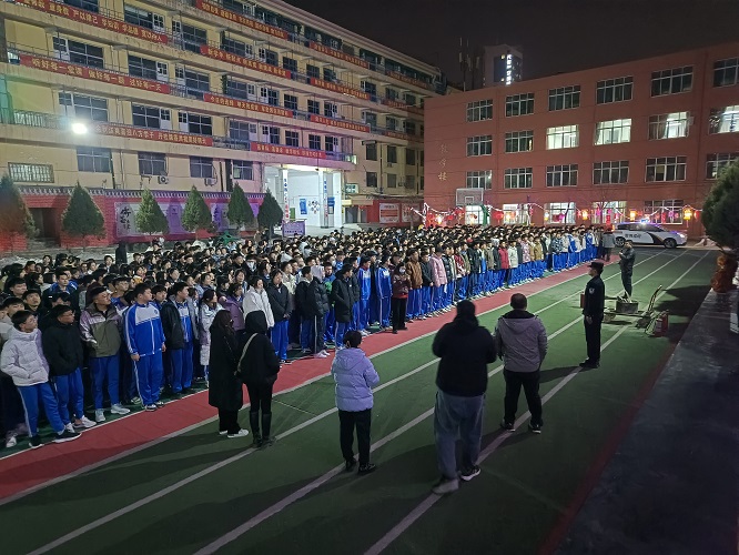在演练当天晚上,全校师生按照预定方案,迅速进入应急状态。学生在宿舍待命。各班班主任和指定的疏散引导员在指定位置就位,负责组织学生疏散。21时40分,随着警报声的响起,同学们用湿毛巾捂住口鼻,低头弯腰,按照疏散路线快速有序地从宿舍撤离到学校操场。整个疏散过程紧张有序,没有出现摔倒、踩踏等意外情况。
