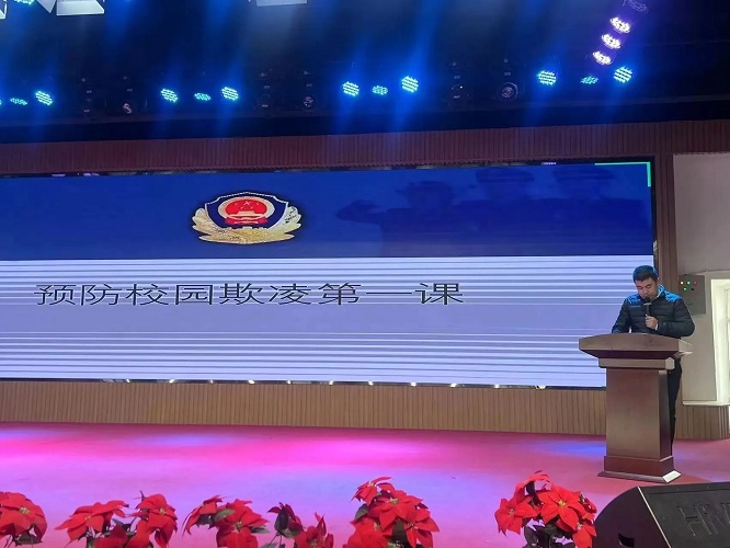 为推进校园法制教育,切实增强青少年法治意识和法律素养,营造学法、尊法、守法、用法的法治校园氛围,构建安全、和谐、文明的校园环境,增强自我保护意识,培养学生成为一名知法、懂法、守法的小公民。2024年2月29日下午宁夏军宏技工学校特邀胜利街派出所尤方伟警官,来我校开展“法治教育进校园 安全教育伴成长”主题活动讲座。活动由学生处李杲阳老师主持,全校学生参与本次活动。