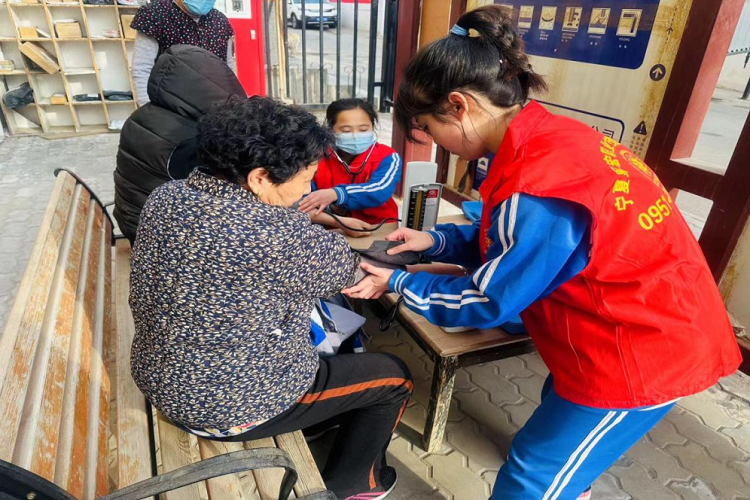 在学校团委组织下,社区工作人员配合下,我校护理专业同学积极开展“雷锋精神”义诊活动,为社区老人进行血压测量、血糖测量等项目,并耐心的为大家解答各种健康问题,进行健康宣教,同学们提醒老人要多锻炼,养成健康的生活习惯。