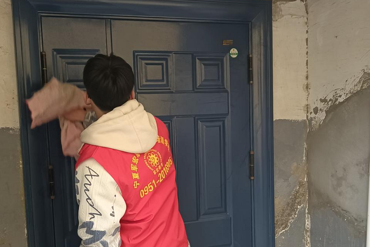 同学们还在社区工作人员协助下帮助社区工作人员进行社区环境卫生大扫除,将社区的垃圾入箱,对楼梯、公示牌,单元门等进行擦拭,同学们亲力亲为、互相帮助,完成后社区工作人员及居民对同学们的表现大力赞扬。