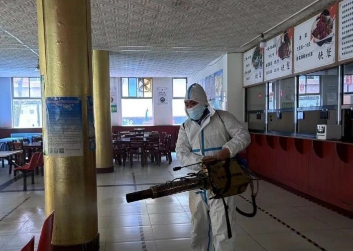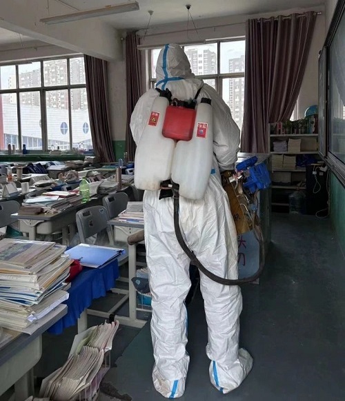 为减少春季传染疾病的发生,预防各类疾病的传播,营造干净、整洁的校园环境,切实保障全校师生的生命安全和身体健康,宁夏军宏技工学校学生处负责对全校进行消毒工作。