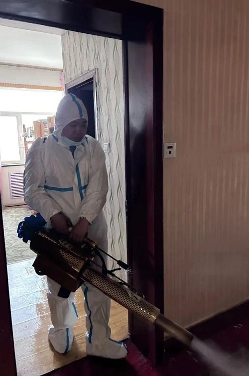 在消毒中,严格按照消毒要求,使用专业消毒机器,本着认真负责的态度,不放过任何一个死角,确保消毒彻底。严格按照操作规范,按比例配兑消毒液,确保消毒质量和效果。