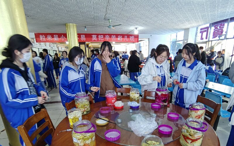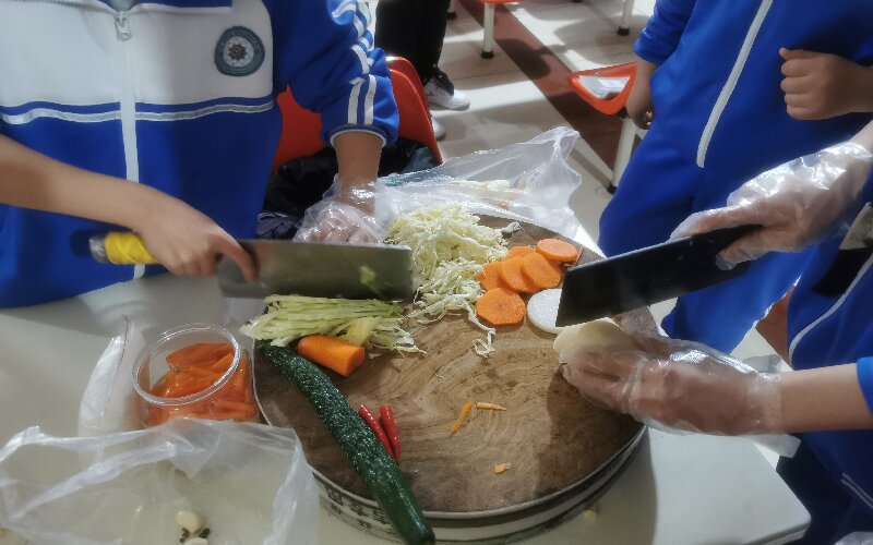 为了制作出具有独特风味的泡菜,学生们还自发从家中带来了各种辅助材料,如“陈泡菜水”、泡椒、小米辣等。在活动当天,学生们热情高涨,分组合作,严格按照制作流程进行操作。从选材、清洗、切割到腌制、发酵,每一步都严谨有序,充分展示了学生们的科学态度和团队协作精神。