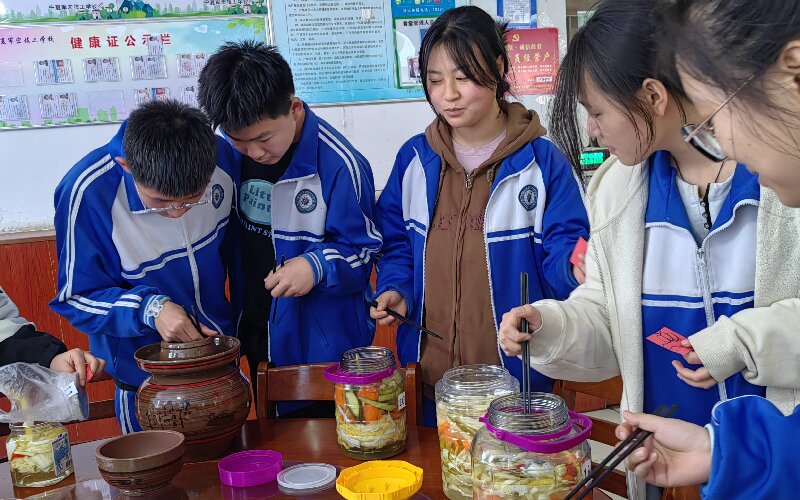 最终,到了展示成果的时刻。学生们纷纷展示自己的泡菜作品,有的注重色彩搭配,色彩斑斓;有的追求新奇独特,创意十足;还有的展示了精湛的刀工技艺。品鉴环节更是将活动推向了高潮,老师和同学们共同品尝着这美味的泡菜,对每一组作品都给予了高度评价。