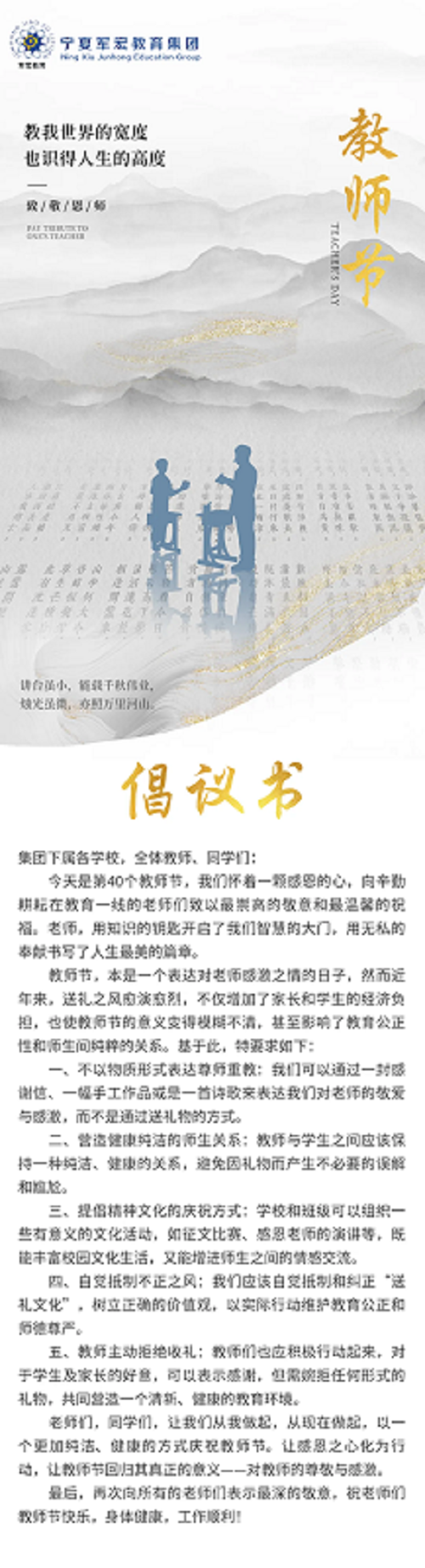 宁夏军宏教育集团2024年教师节倡议书