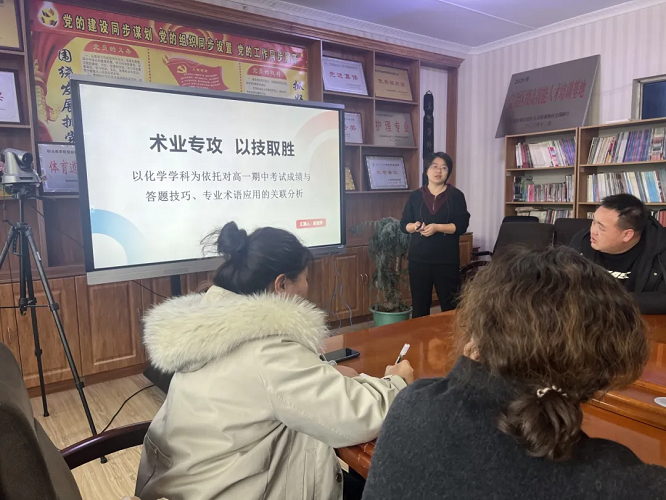 席亚萍老师以“术业专攻,以技取胜”为主题,首先对此次考试整体情况进行了分析,然后根据具体习题结合学生的答题情况,指出学生在专业术语应用、书写规范性方面存在的问题,并与其他教师交流了自己在教学中积累的经验,比如定期梳理知识网络,构建知识体系;从不同题型训练学生审题、做题,注重分析典型试题,引导学生举一反三等经验。