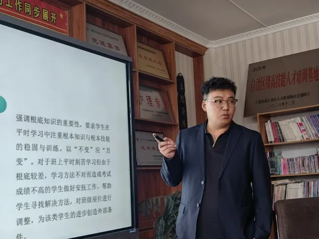 黄明武老师以“配合班主任进行班级管理”为主题,强调鼓励教学,正面与学生交流,优化教学方法,使教学过程有趣、生动的同时发挥任课教师在班级管理中的重要角色和作用,并以自身经验提出了具体措施;