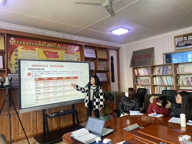 年级主任卢姝璟结合各项数据,深入剖析月考成绩。通过直观统计、纵横对比等方式全面分析了考试数据,指出存在的问题,并结合学生实际提出解决问题的措施。
