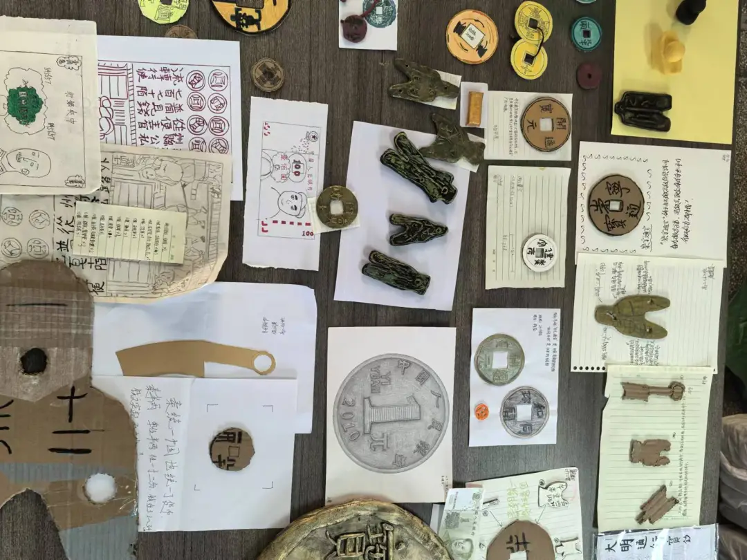 他们或是穿梭于充满历史韵味的博物馆展厅,与古老的钱币文物进行跨越时空的对话;或是埋首于浩如烟海的书籍资料中,逐字逐句地挖掘隐藏其中的钱币奥秘。在积累了丰富的知识后,同学们摇身一变,成为创意无限的艺术家,巧妙地运用日常生活中触手可及的物品,如废旧纸张、彩泥、布料等,凭借着一双双巧手和天马行空的想象力,精心雕琢出一件件别具一格的钱币模型。