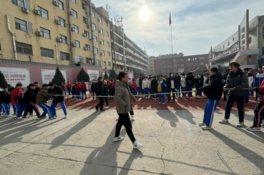 在冬日暖阳的照耀下,学校操场上,一场力与美的盛宴悄然拉开序幕。为加强同学们的凝聚力,增强同学们的集体荣誉感,丰富校园文化生活,2024年12月16-20日,我校开展了冬季拔河比赛活动。