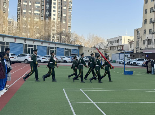 伴随着激昂的音乐,国旗护卫队迈着整齐的步伐,护送着鲜艳的五星红旗步入操场中央。他们的每一步都坚定有力,每一步都凝聚着对国旗的无限敬意。